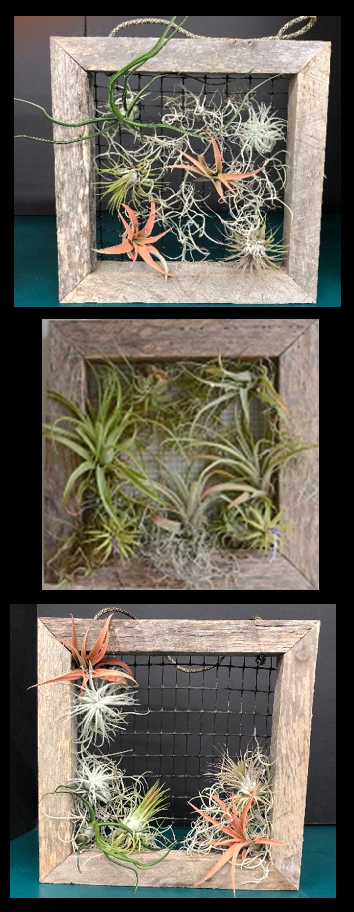 Join horticulturist, Louise Clarke, for a creative, hands-on workshop using tillandsias, or air plants. New-world members of the Bromeliad family, these botanical curiosities require minimal care. You will construct a 12-inch by 12-inch frame from weathered, re-purposed wood to form a shadowbox, into which you will attach a variety of air plants. Your frame can be fitted to hang or stand upright and be ready for outdoor display in summer and brought inside as easy-care houseplants when autumn’s chill arrives.